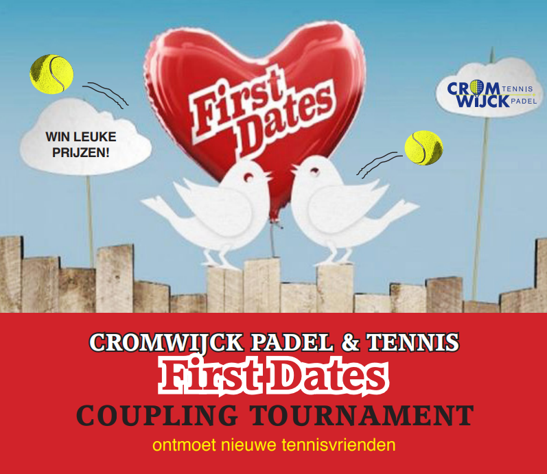 Op zaterdag 25 juni 2022 vanaf 16.00 uur organiseren we het ‘First Dates Coupling’ toernooi waar onze nieuwe leden of introducees nader kennis kunnen maken met de club en leden die al wat langer lid zijn tijdens een potje tennis of padel.