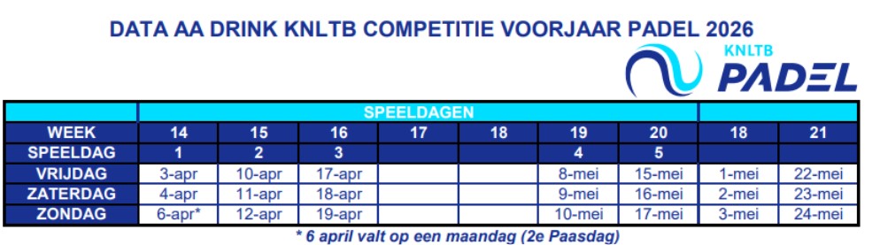 PADEL VOORJAARSCOMPETITIE 2026