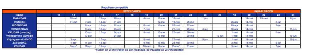 Gezien de grote vraag naar competitie is de Technische Commissie (TC) continu bezig om de indeling zo eerlijk mogelijk te maken. Hierover is ook met de KNLTB gesproken. We begrijpen dat uitloting soms voor frustratie kan zorgen. Hoewel we al een transparant en eerlijk proces hanteren, merken we dat sommige teams zich voor meerdere dagen inschrijven.